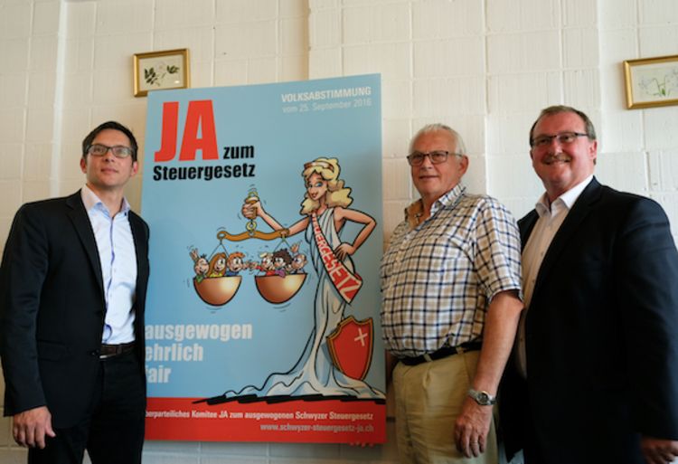Am Mittwoch präsentierte das Ja-Komitee zum Schwyzer Steuergesetz in Biberbrugg seine Argumente. Man wolle ein vereinfachtes Steuersystem, die Steuerattraktivität erhalten und die Sanierung des Staatshaushaltes.